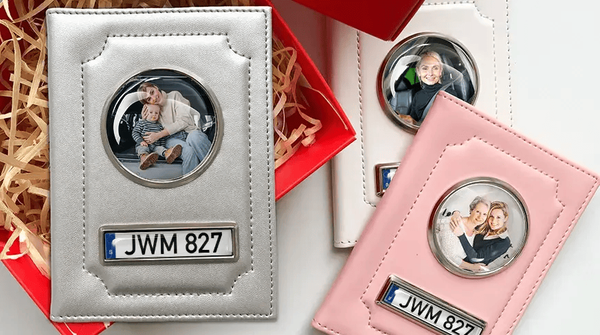 Personalizovaný držák na doklady do auta navržený podle vašich přání.