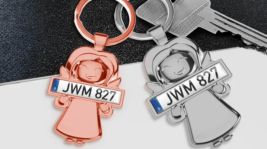 Objednejte si svůj individuální anděl strážný jako přívěsek na klíče ve tvaru SPZ ještě dnes!