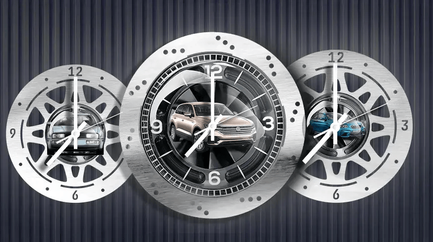 Exactamente tu modelo de coche en tu reloj de pared con diseño de neumáticos.