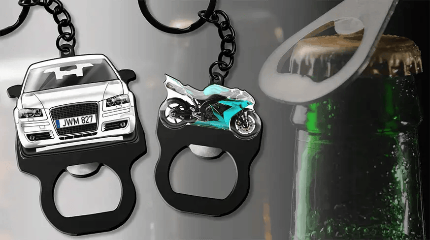 Faigh do bhronntanas pearsantaithe, eochairshlabhra oscailteoir buidéal le do fheithicil agus uimhir do phláta ceadúnais anois!