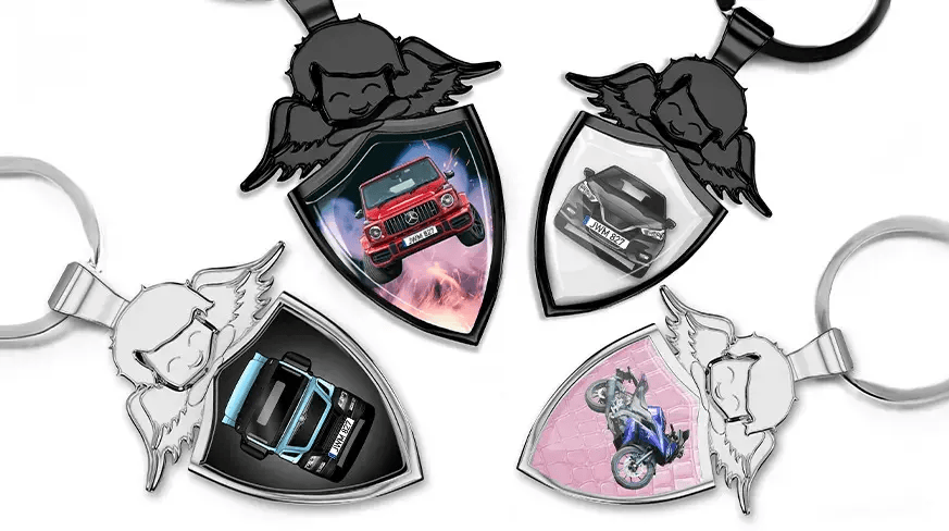 Våre dyktige produktgrafiske designere har laget en rekke stilige design for våre produkter. Bestem selv hvilket motiv som skal pryde din nøkkelringengel!